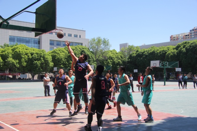 上半场一开始, 机电学院率先得球,公司篮球健儿采取主动出击,以矫健熟练的动作迅速传球直逼篮板。双方运动员都迅速进入状态,在场上你争我夺、你攻我守,展开一轮轮的投球,双方队员情绪高涨,争夺异常激烈。最终公司以52:30比分领先。