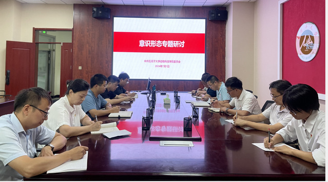 郭玉堂对学院意识形态工作推进情况做了汇报,重点梳理了学院教学、员工工作和宣传工作运行中,长期可能存在的风险点,短期可能触发的风险事件,通过生动案例讲解了意识形态工作的重大意义,并对学院各科室的保密工作进行了要求,各支部书记就意识形态工作分享了好的方法,也对工作中遇到的问题和困难展开研讨交流。