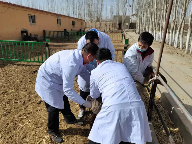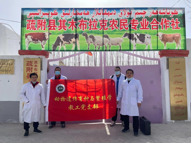 这个技术团队中的教师均为304am永利集团官方网站动物遗传育种与繁殖教工党支部的党员,他们将党史学习教育活动与科研技术服务工作相结合,到南疆农村的生产一线实地调查了解情况。党员们充分发挥专业优势,对疏附县其木布拉克农民专业合作社的生产经营情况进行调研和摸底,并对合作社的育种规划编制、圈舍改造、配种站及兽医实验室建设进行了现场指导。同时,还开展了妊娠母羊B超检测技术现场培训。