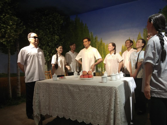 我们走过一段红色方砖砌成的甬路进入周总理纪念馆。这里陈列着我们敬爱的周总理当年用过的一些物品,四周的墙壁上挂着一幅幅的图片,这些都记录了这位人民的好总理伟大而平凡的一生。