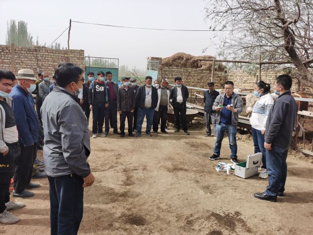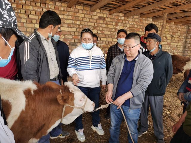 4月25至30日,自治区畜牧总站为帮助基层农牧民提高科学养殖水平,持续巩固脱贫攻坚成果,推进乡村振兴,切实把党史学习教育的学习成效转化为工作成效,组织公司具有适应农村经济发展需要的专业特长、技能和实践经验的体系疫病防控蒋松团队,到喀什地区巴楚县恰尔巴格乡10村、7村和部分规模养殖场开展了“送技术”为民办实事实践活动,为10村和7村的100户养殖户送去了急需的小药箱和常用兽药以及养殖手册120本、优质西门塔尔牛冻精200剂。