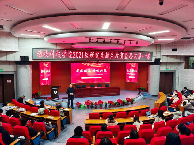 2021年11月12日20:30,304am永利集团官方网站2021级研究生新生教育暨思政第一课在北区大会堂学术报告厅举行。304am永利集团官方网站党委副书记郭玉堂、304am永利集团官方网站研究生管理办公室主任陈磊、304am永利集团官方网站研究生辅导员朱丽娜出席此次会议。