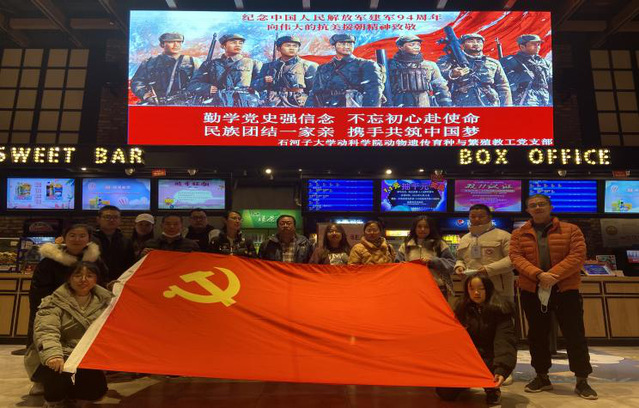 为持续深入开展党史学习教育,进一步加强党员的思想教育,丰富党员的精神文化生活,促进各民族党员之间的团结与交流,鼓舞广大党员勿忘历史、缅怀先烈,弘扬“抗美援朝、保家卫国”的伟大革命精神, 11月19日,动物遗传育种与繁殖研究生党支部和动物遗传育种与繁殖教职工党支部联谊,以“勤学党史强信念,不忘初心赴使命。民族团结一家亲,携手共筑中国梦”为主题,共同组织全体党员观看爱国主义教育影片《长津湖》。