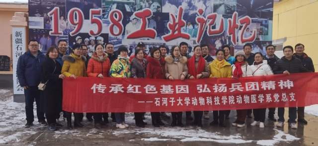 2021年11月27日,动物医学系党总支下属基础兽医学,临床兽医学,预防兽医学教工党支部党员及结亲员工38人赴石河子戈壁印象文化旅游园(原八一棉纺厂厂区)开展了“传承红色基因、弘扬兵团精神”为主题的党史爱国主义教育活动。