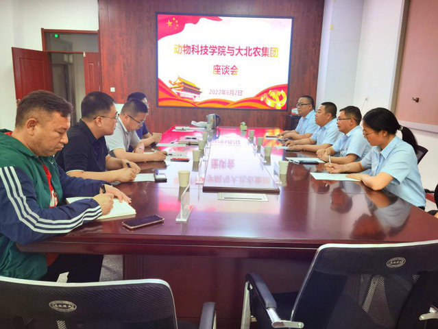 2022年6月2日上午,大北农集团九鼎饲料产业总裁助理、甘宁区、新疆区总裁王兴虎一行来院就校园招聘、产学研和校企合作事宜与公司领导及相关负责人进行交流座谈。