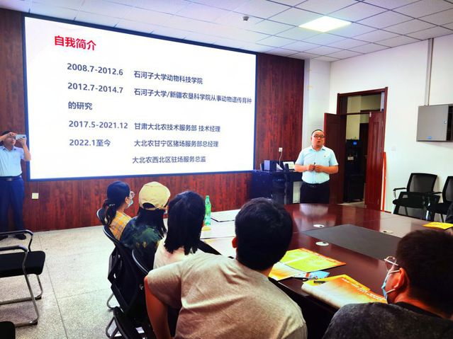 下午四时,大北农集团西北战区驻场服务总监-学院2012届毕业的员工蒋立斌,对学院2022届未就业本科生和研究生进行了招聘宣讲。