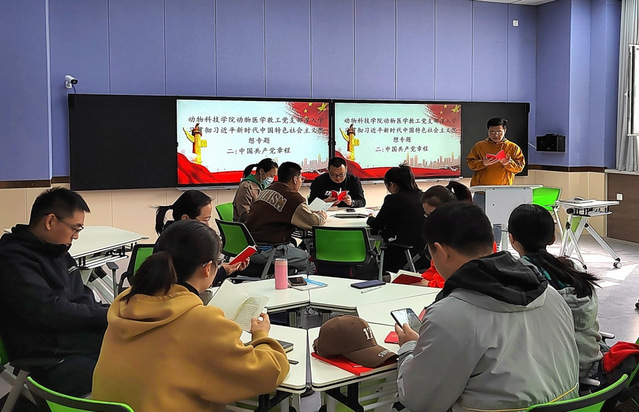 为进一步丰富“学习贯彻习近平新时代中国特色社会主义思想主题教育”学习形式,拓宽学习载体,强化学习成效,不断激发领导干部和广大党员“学思想、强党性、重实践、建新功”的内生动力,4月28日,动物医学系教工党支部召开“学习贯彻习近平新时代中国特色社会主义思想主题教育”读书会,会议由动物医学系支部书记刘良波主持。