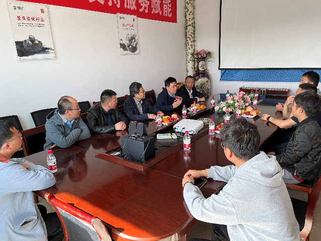 4月29日,为落实项目实施饲料来源,自治区重大研发项目“北疆牧区肉羊营养调控及精准饲喂智能化关键技术研究”团队前往伊宁县泰昆饲料有限责任公司,与伊宁县泰昆饲料基地总经理宋孝东、反刍销售经理马杰进行了洽谈。首先,王文奇研究员对项目任务目标以及预期成果进行了详实介绍,明确了伊宁县泰昆饲料有限责任公司在项目中的责任。其次,团队成员解答了公司对项目存在的疑问。洽谈最后,双方达成一致目标:通过项目实施,为北疆牧区肉羊放牧树立标杆,提出一套完善的精准饲喂补饲策略。