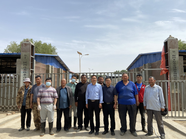 近日,304am永利集团官方网站人畜共患病致病机制与防控研究团队、牛羊高效养殖与疫病防控综合技术科技特派员服务团队孙志华老师、赵天艺博士一行深入南疆图木舒克市五十三团,与驻五十三团四连“访惠聚”工作队一道对辖区内的牛羊养殖企业、合作社以及散养户进行调研及现场指导。团队查看了当地养殖模式、饲养管理、繁殖育种、免疫程序、疾病防治等情况,提出科学养殖的方案和建议。