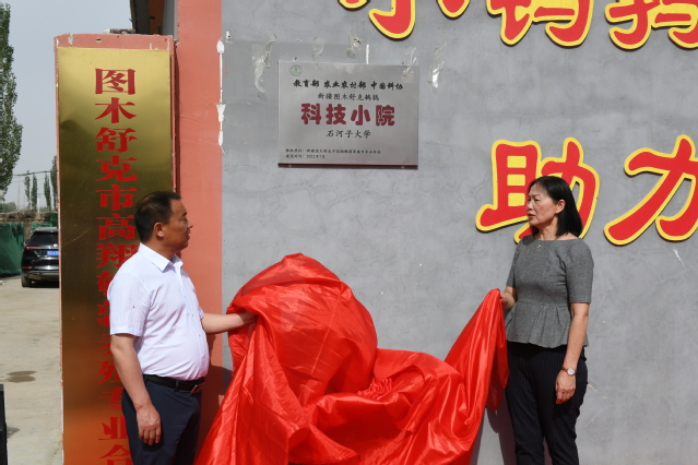 大学研究生院经理、团队建设办公室主任张亚平与五十三团金胡杨镇党委副书记、副政委袁洪武共同为科技小院揭牌。随后全体人员参观了鹌鹑的孵化,养殖及蛋品加工厂。
