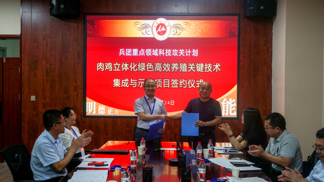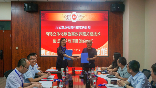2023年6月24日,兵团重点领域科技攻关项目-肉鸡立体化绿色高效养殖关键技术集成与示范在公司启动,项目立足兵团肉鸡产业发展重大需求,以肉鸡立体化养殖中饲养成本较高、生产效率低下、产品品质不佳等制约肉鸡发展的关键问题为研究目标,充分发挥龙头企业的带动作用,以黄羽肉鸡为研究对象,开展立体化绿色高效养殖技术集成研究与示范应用,提升优质肉鸡规模化生产水平和效益。本项目的实施对于兵团提高肉鸡产能和鸡肉产品核心竞争力,引领和推动肉鸡产业高质量可持续发展,促进兵地融合发展、职工多元增收和乡村振兴具有重大意义。