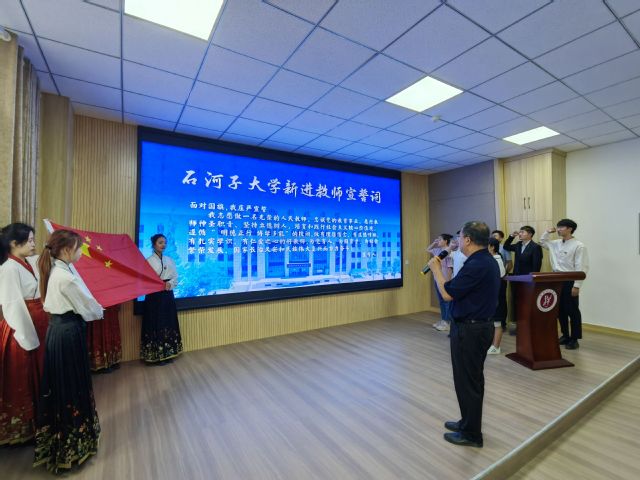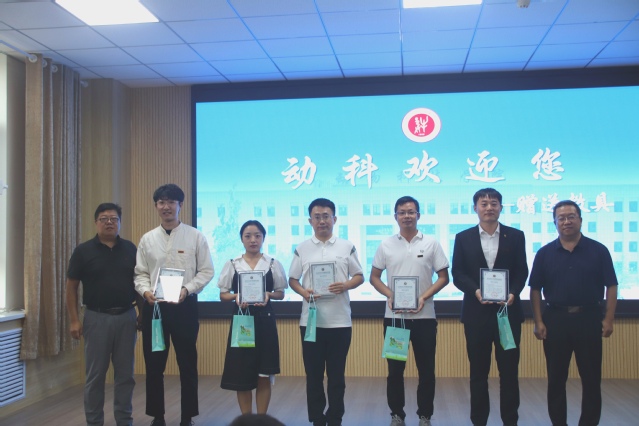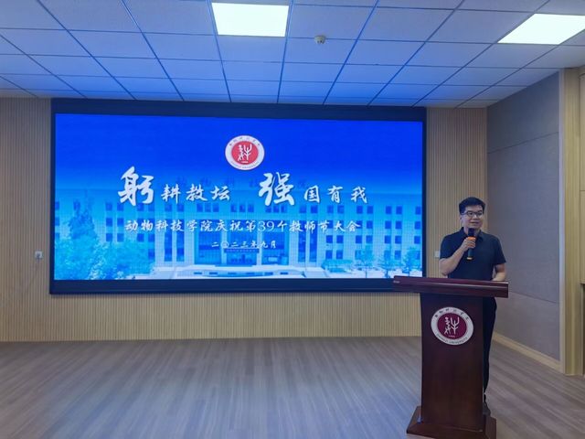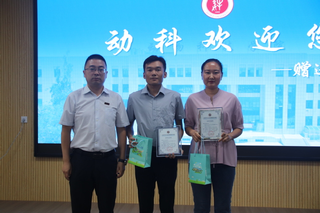 青年教师是未来教育的主力军,也是学院发展的中坚力量。长期以来,公司直致力于教师队伍的培养,关心新进教师的成长。2023年度,公司共引进8位优秀的青年教师,此次大会首先举行了“动科欢迎您”新进教师入职仪式。8位新进教师用VCR向大家介绍和展示了自己,新进教师代表潘宇发表入职感言,全体新进教师做入职宣誓,学院领导为他们赠送教具,祝贺他们成为光荣的人民教师并热烈欢迎8位老师加入动科大家庭。