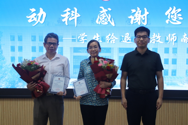 春风化雨四十载,奉献青春育桃李。今年公司有三位老师光荣退休,在“动科感谢您”教师荣休仪式环节,学院用PPT展示了三位老师三十多年来在三尺讲台倾情一生育英才的光辉职业生涯,三位老教师从教以来,几十年如一日,兢兢业业、无私奉献,见证了304am永利集团官方网站的高质量发展,把美好的年华和热情都献给了教育事业,圆满完成了党和人民交给的教育任务。谷新利教授远在外地,用一段视频为大家送来寄语,表达了对国家、学校、学院的感恩感谢,也提出了对学院未来发展的期望与期待。员工为退休老师们送上鲜花致以敬意和祝福,全体教职工共同见证了这一温馨而感人的时刻。