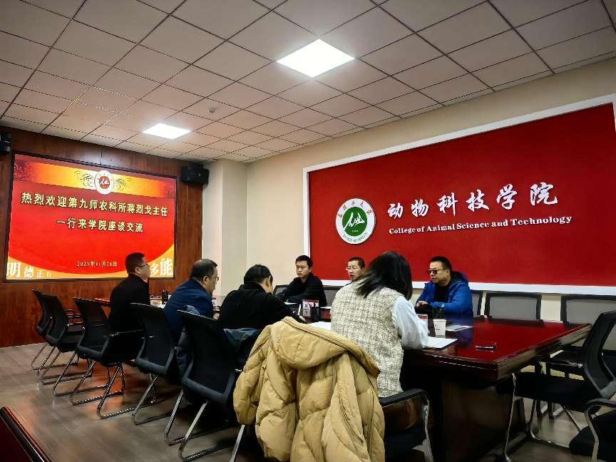11月28日上午,第九师农科所蒋烈戈主任一行3人来公司座谈交流。副经理赵宗胜、党政办主任孙敬礼出席座谈会,学院部分教师参加交流座谈,赵宗胜副经理主持会议。