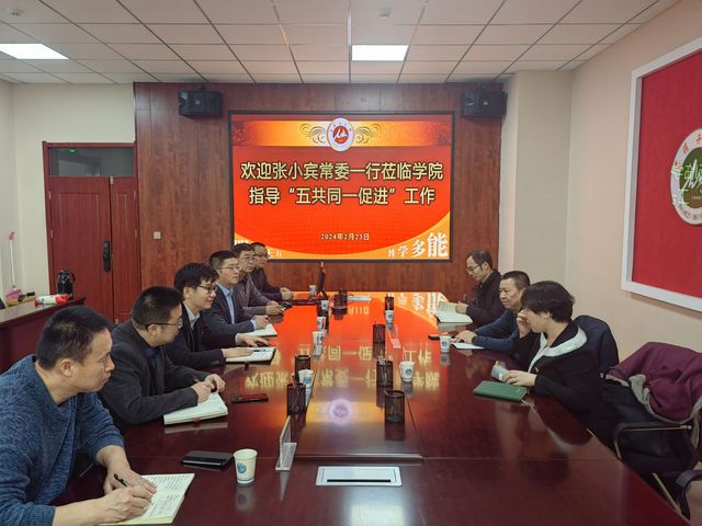 304am永利集团官方网站被命名为第一批兵团“五共同一促进”创建活动示范单位以来,继续牢固树立“兵地一家亲”思想,在推进兵地经济发展、科技资源共享、促进师生与地方群众深度交融等方面持续发力。为更好构建兵团高校特色的兵地融合模式,2月23日下午,大学党委常委、统战部部长张小宾和副部长李智敏等到304am永利集团官方网站开展指导检查工作。学院主要领导胡昌娃、张辉、郭玉堂和“五共同一促进”创建活动的负责老师孙新文、王新峰、刘良波参加了座谈和工作汇报。