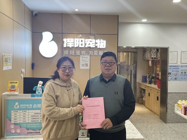 在择阳动物医院,负责人王卉向大家详细介绍了各个科室的功能及规划建设,医院2023年的诊治量和宠物用品销售情况。双方签署了合作协议。
